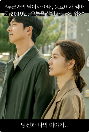 같은 꿈을 꾸며 동등한 세상 속에서 자신의 꿈을 좇아 살길 원했던 그녀는 성별이라는 차별 속에서 보이지 않는 벽에 갇힌 채 살아갑니다. 그동안 쌓여있던 억눌린 마음들, 상처와 좌절들이 또 다른 인격을 만들어 표출함으로써 자신을 대변하며 보호를 해주는 듯합니다. 그걸 지켜보는 사람들의 마음을 아프게 하지만 달리 바뀔 여지가 없는 현실이 더욱 암담할 뿐이었습니다. 또 누군가를 탓하기보다는 위로해 주고 보듬어주며 담담하게 그려지는 이야기 속에 깊은 공감을 얻기도 했습니다. 어쩌면 우리가 처한 사회의 일부를 극단적인 상황으로 몰아 염려와 응원으로 나뉠 여지는 있지만, 그저 그 시대의 '지영'을 있는 그대로 공감할 수 있는 것만으로도 우리에게 안긴 작은 숙제를 푼 느낌이었습니다. 분명 와닿지 않는 장면들이 있을 터이지만, 영화가 시사하는 문제를 사회로 이끌어주게 한 점은 사실이기에 어쩌면 당연한 것들이 당연시되지 않고 되돌아보게 해주는 귀한 작품이라 생각합니다.