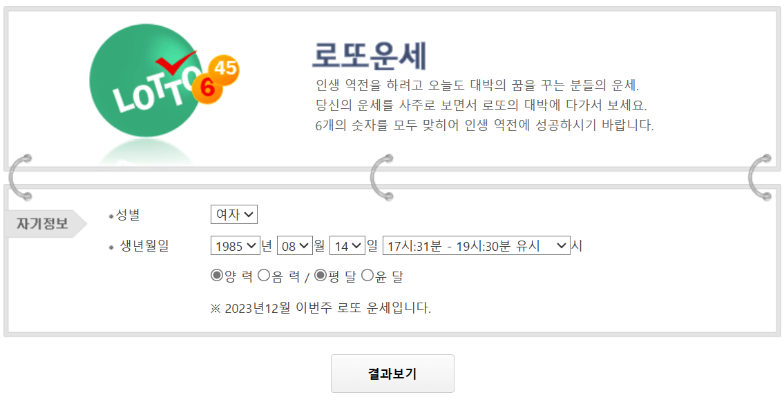 TIP) 보다 정확한 운세 확인 방법 : 양력보다는 음력을 기입, 정확한 개인정보 입력 (태어난 시간)