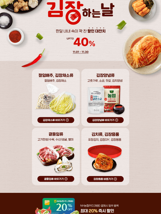 또한 절임배추 사전예약 시 오배송과 김장일정의 차질에 우려하며, 김장일 1~2일 전으로 주문하시는 것을 추천합니다.